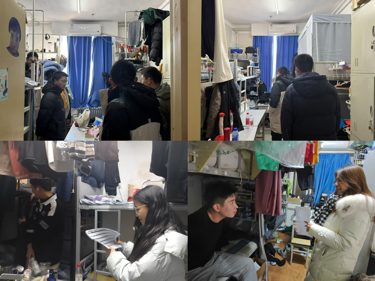 为进一步加强员工宿舍安全卫生管理,及时发现并消除宿舍安全隐患,营造和谐稳定的学习生活环境。12月29日至1月8日,法公司党委书记张立学、经理李巍涛、党委副书记、副经理秦莹分别带队前往员工宿舍,开展专项检查。全体班主任及辅导员深入员工宿舍开展了全覆盖的隐患排查整改工作。