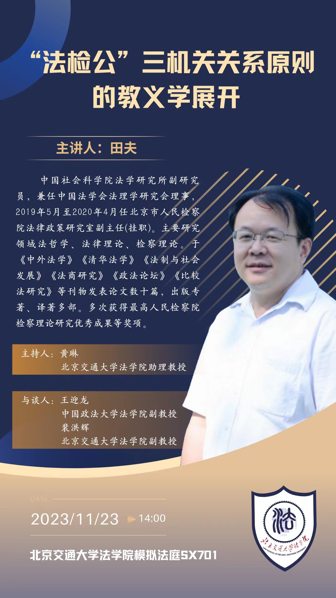 【讲座预告】田夫:“法检公”三机关关系原则的教义学展开