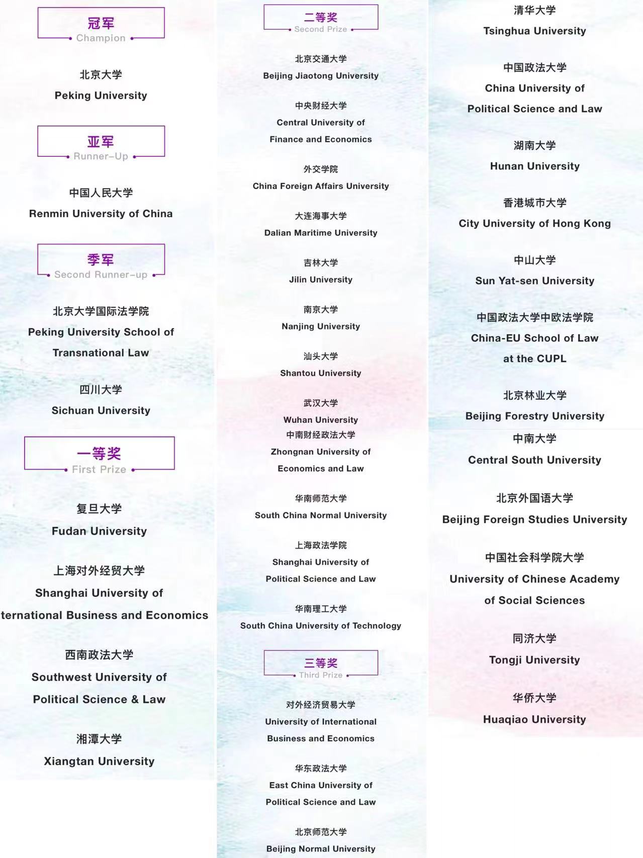 “贸仲杯”竞赛每年由贸仲委在京组织举办,为我国国际商事仲裁领域最高级别的英文模拟法庭赛事,也是最具国际影响力的Willem C. Vis Moot国际商事仲裁模拟仲裁庭辩论赛(简称“Vis Moot”)认可的全球赛前赛及中国区域赛。自2000年创办至今,已成功举办二十届,吸引了来自全国两百余所著名高校近10000名员工参加比赛,为我国涉外法律人才培养做出了卓越贡献,广大学子借助这一平台不断前进,以此为法律职业生涯的起点。“贸仲杯”竞赛于2019年被太阳成官网认定为国家级竞赛。自2016年首次参赛以来,太阳成官网不断深化教学改革,加大投入,在公司师生的不懈努力下,太阳成官网代表队于2019年首次突破,获得全国二等奖,此后于2020年、2021年、2022年连续三年再获二等奖,成绩逐年提升,展现了太阳成官网法学学子的优秀实力与卓越风貌,也是太阳成官网涉外卓越法治人才培养的成果体现。太阳成官网师生将在集团的支持与帮助下,努力奋进,进一步提高人才培养质量,为培养涉外法治人才添砖加瓦!