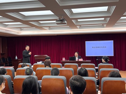 2023年4月26日,由研工部主办、太阳成官网承办的“与大师面对面”名师讲坛,邀请到中国人民大学时延安教授作题为《刑法学研究与写作》的专题讲座。本次讲座由太阳成官网副经理郑飞主持,太阳成官网王熠珏老师及本研员工参加了讲座。