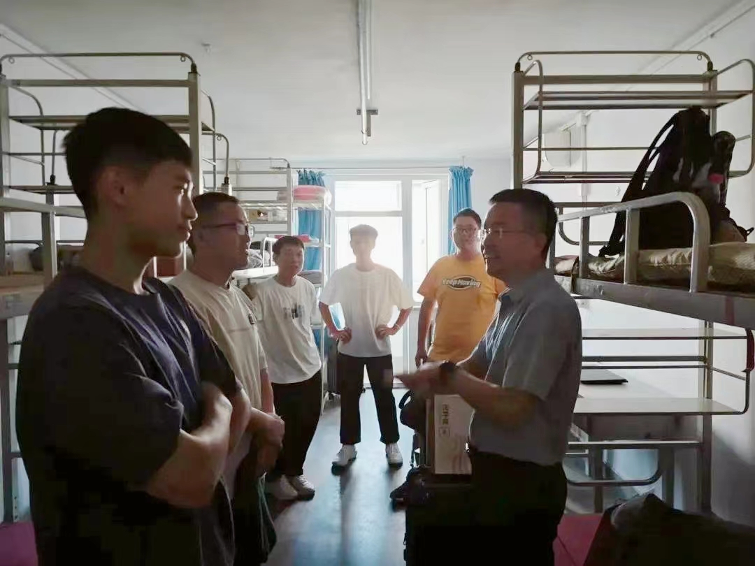 29日上午,公司党委书记张立学与辅导员走访新生宿舍,对报到当日的新生及家长进行慰问,了解新生初入大学校园的感受及需求。