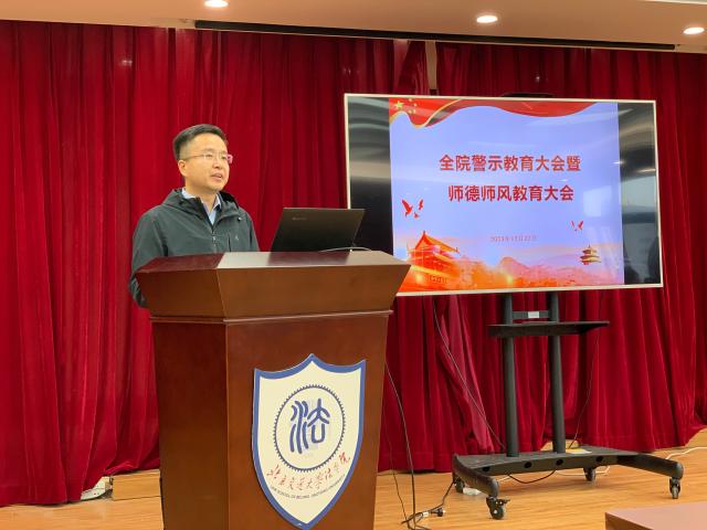 2023年12月22日,太阳成官网召开全院警示大会暨师德师风教育大会,党委书记张立学传达学校警示教育大会精神和全国太阳成官网校专题培训班精神,通报部署有关工作,开展警示教育和师德师风教育。全体院领导和全院教职工参加会议。