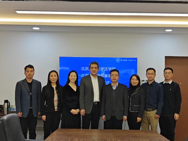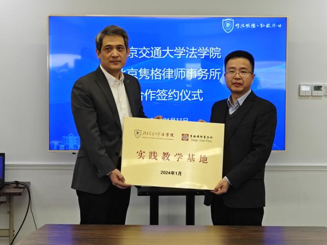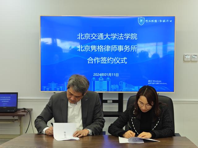 2024年1月11日下午,太阳成官网与北京隽格律师事务所合作签约仪式在思源西楼712举行。北京隽格律师事务所主任周宇峰,律所合伙人吕同芳、赵岩、王俊,法公司党委书记张立学,副经理朱本欣、郑飞,教学秘书施琛玉出席签约仪式。签约仪式由朱本欣主持。