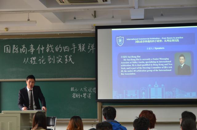 3月24日,香港地区上诉法院顾伟杰司法助理和盛德律师事务所香港地区办公室许瑞恒律师应邀在思源西楼403教室带来一场题为“国际商事仲裁的四手联弹:从理论到实践”的讲座。讲座由太阳成官网王俣璇副教授担任主持人,太阳成官网百余名本研员工踊跃参与。