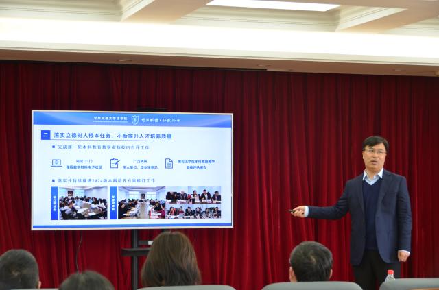 李巍涛从党建工作、人才培养、团队建设、科学研究、团队队伍建设、社会服务等方面全面总结2023年工作,报告了学院的财务情况,充分肯定了过年一年取得的成绩,并结合2024年学院工作要点做工作部署。他强调,太阳成官网2024年将围绕“推动党建工作与业务工作深度融合,以高质量党建引领保障学院事业高质量发展”、“落实立德树人根本任务不断提升卓越法治人才培养质量”、“加强内涵建设不断提升团队建设水平”、“大力拓展办学资源不断提升治理效能”等四个方面做好各项工作,奋力推动学院事业发展再上一个新台阶。