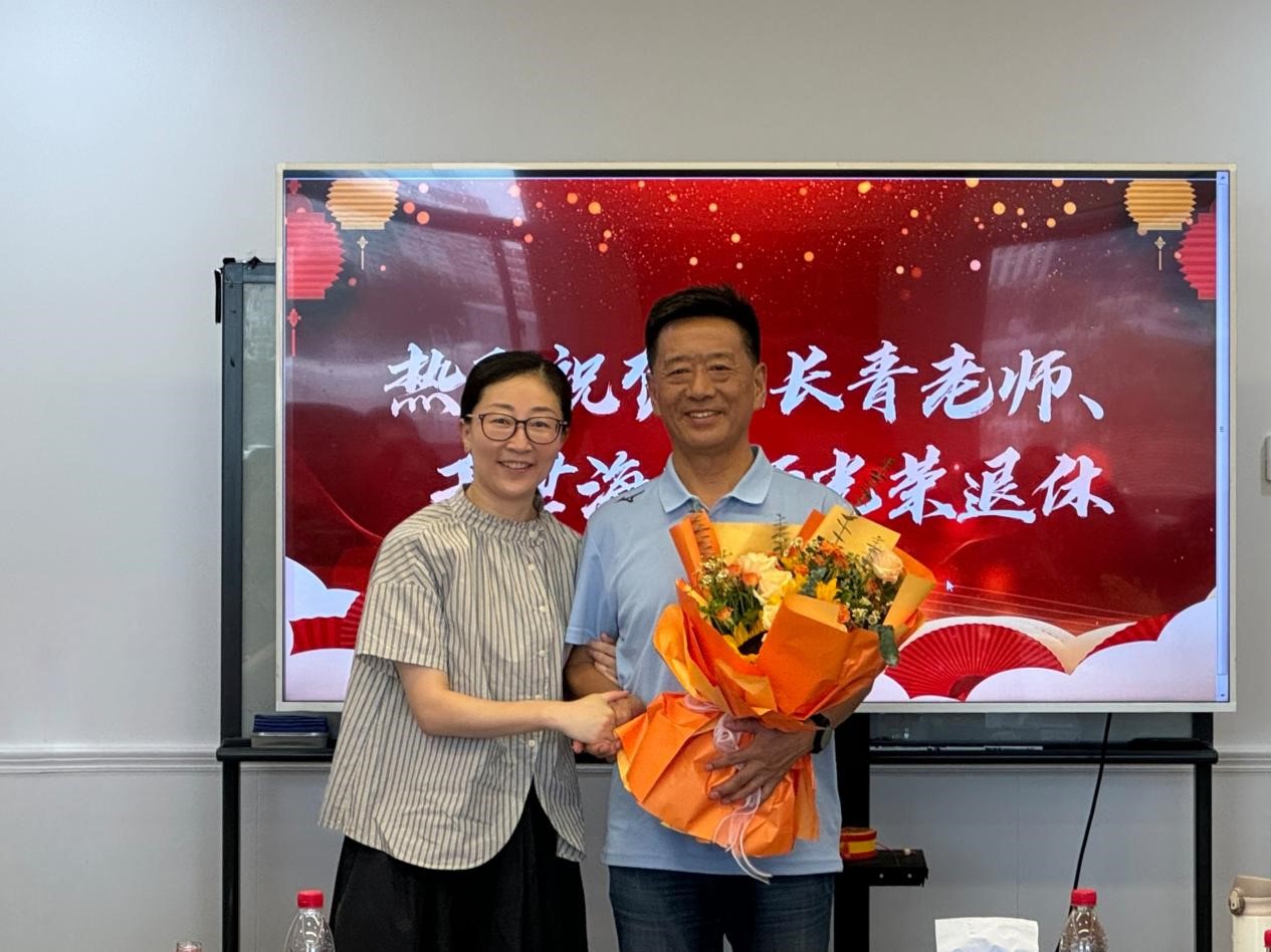 经理李巍涛代表学院全体师生对张长青老师和王世海老师致以崇高的敬意和衷心的感谢。李经理回顾了两位老师对学院做出的贡献,表示正是在两位老师的引领下,学院团队力量愈发团结壮大,同时也祝愿两位老师的退休时光精彩依旧,万事顺心!