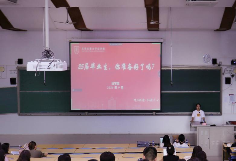 秦莹以“25届毕业生,你准备好了吗”为主题,围绕当前就业形势与大环境、法科生就业的机遇与挑战、往届升学就业情况分析等方面做就业动员。对于未来发展和同学们面临的不确定性,她提出四点建议,一是找准定位,勇于打破惯性思维;二是把握时机,做好时间管理;三是一颗红心,修炼心理韧性;四是诚实守信,强化法律和自我保护意识,同时希望党员们结对帮扶,做好学业就业引领和示范。