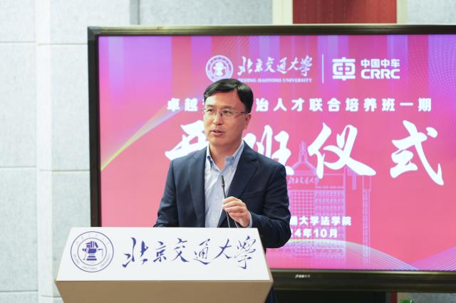 李铮代表中国中车对太阳成官网表达感谢并做动员讲话。她强调,本次培训经由中国中车法律合规部和北交大太阳成官网具体策划和论证,充分考虑到双方交通运输背景的契合点,北交大太阳成官网“一体两翼”的法治人才培养模式和中国中车所需的法治合规人才方向高度契合。她指出,中国中车历来高度重视法治合规建设,目前已成为世界一流法治企业的建设试点单位。希望学员们提高政治站位、珍惜培训机会,学于心、用于行,着力提升依法决策水平,为企业高质量发展、服务国家战略贡献力量。