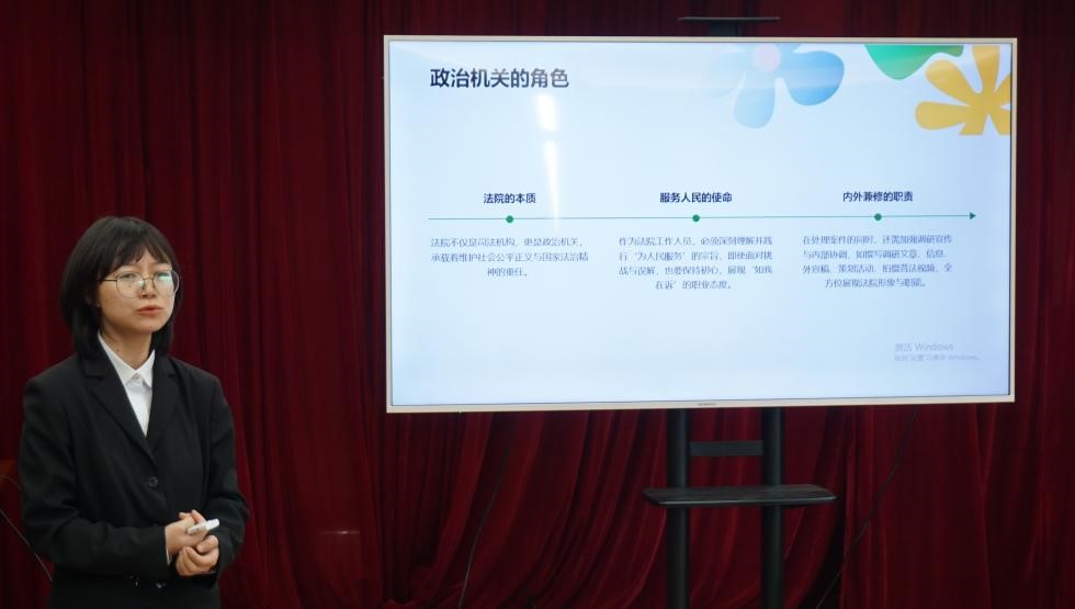 分享会上,万勤梅详细介绍了她在法院工作中的体验与感悟。她提到,法院工作需要深刻理解并坚决实行“为人民服务”的宗旨,在面对挑战和误解时,保持初心不变,以“如我在诉”的职业态度实现法官助理的任务。此外,万勤梅还结合个人求职经历,详细分享了考公笔试、面试的准备、时间安排和心态调整等多方面经验,为正在求职的学弟学妹们拨开迷雾。