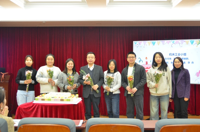 生日会现场布置温馨,洋溢着欢乐与温暖。活动在主持人的热情开场中拉开帷幕,学院领导班子向全体寿星送上鲜花与诚挚的生日祝福,感谢大家一直以来的辛勤付出与无私奉献。