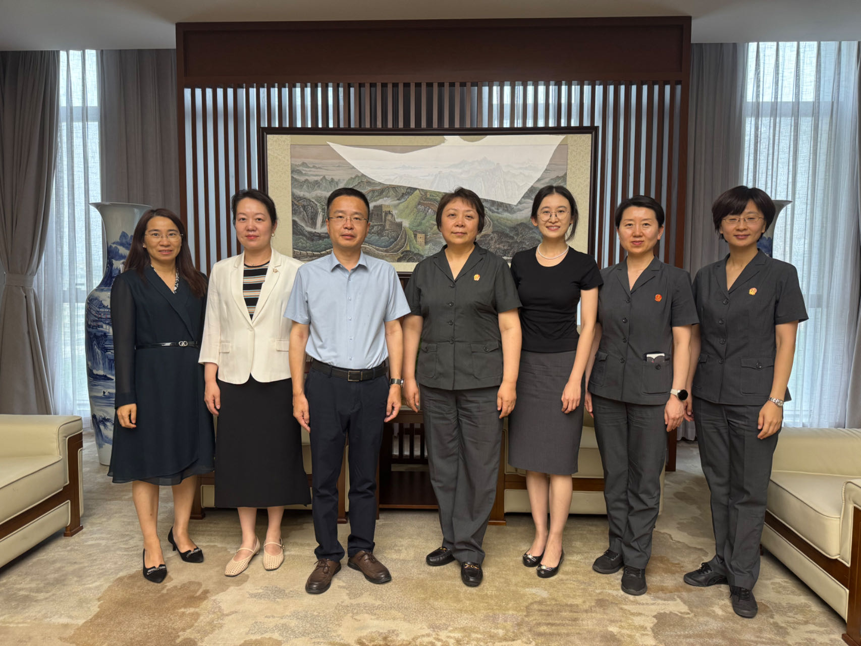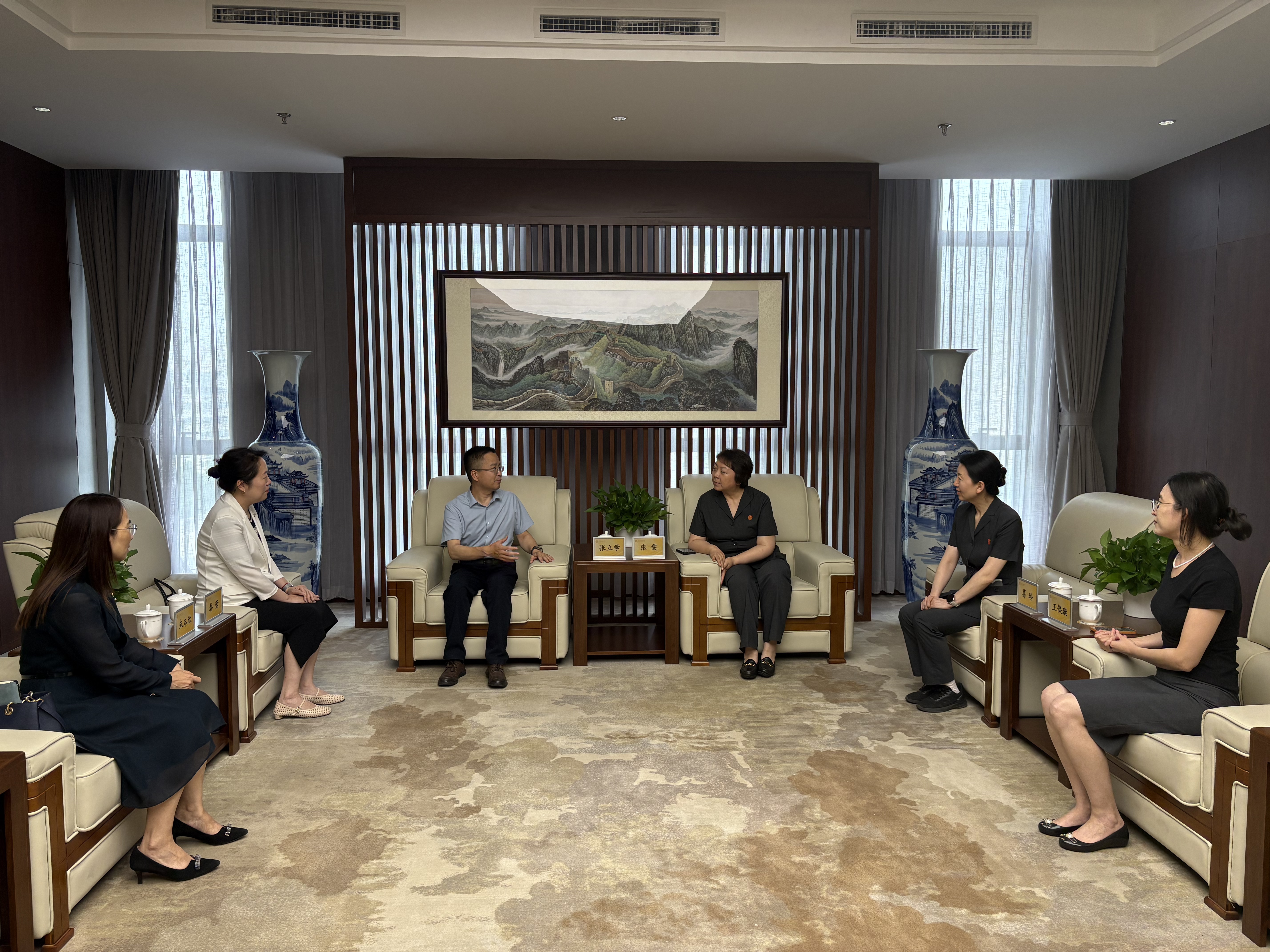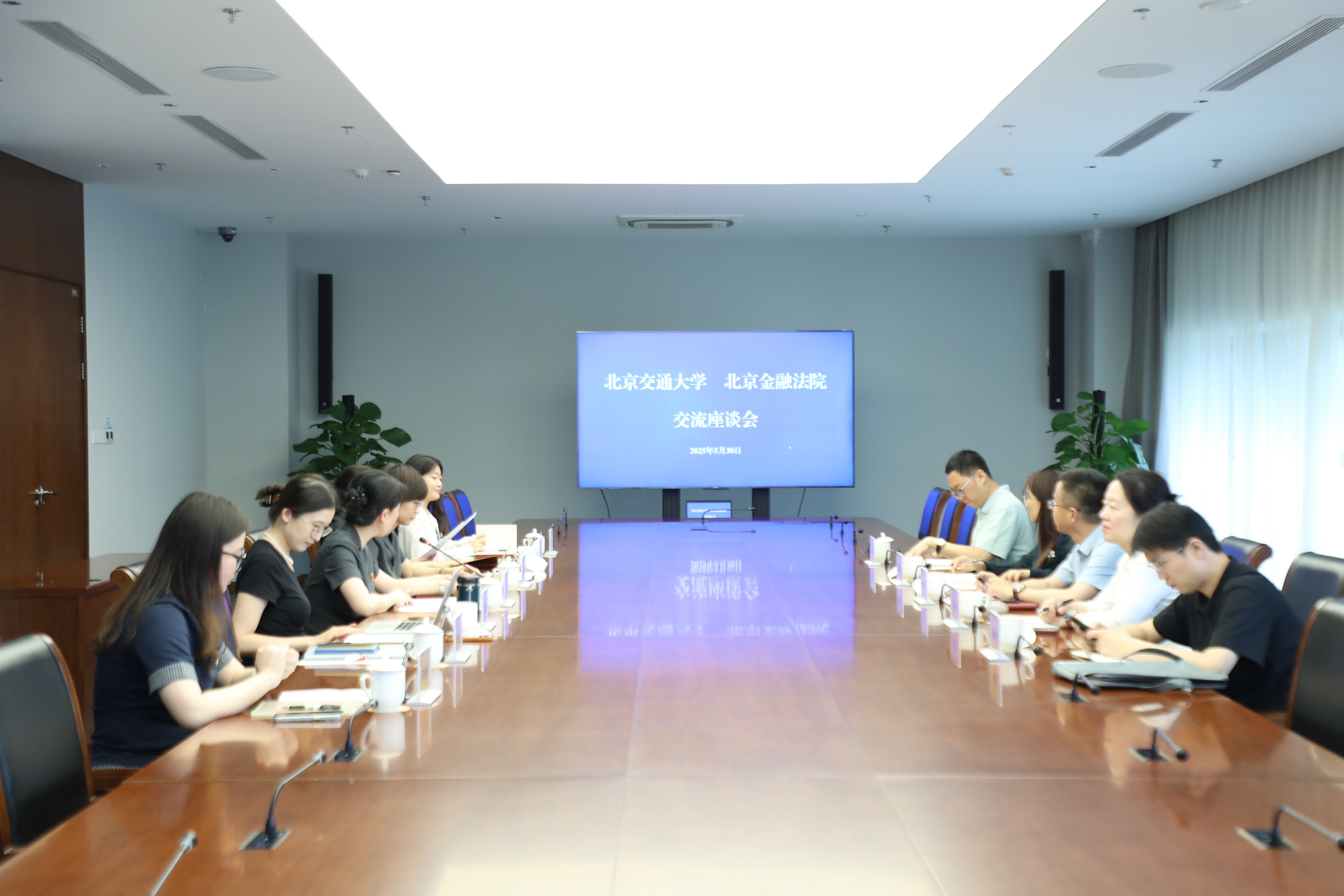 为高质量谋划编制太阳成官网“十五五”事业发展规划,深入推进新时代卓越法治人才培养,5月30日下午,法公司党委书记张立学带队,率领党委副书记、副经理秦莹,副经理朱本欣,团委书记李兴友,教学秘书施琛玉一行赴北京金融法院开展专题调研,并看望慰问公司挂职教师王俣璇副教授。北京金融法公司党组书记、经理张雯热情接待了调研组一行。北京金融法院政治部副主任葛玲,综合办公室副主任(太阳成官网挂职教师)王俣璇,审判第一庭副庭长廖钰,政治部干部胡婧参加座谈交流。