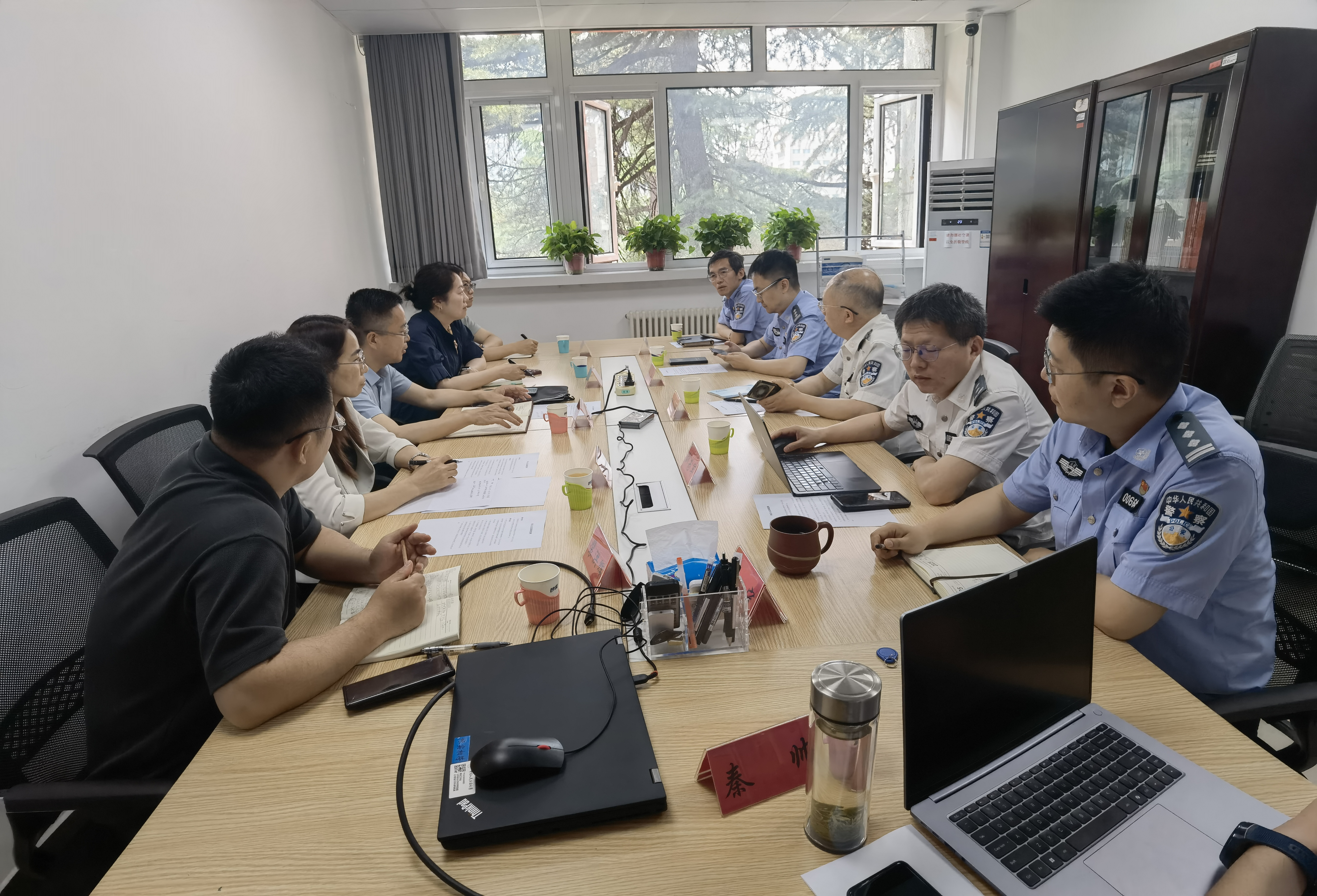 为高质量编制“十五五”规划,深化团队建设与人才培养模式改革,5月29日上午,法公司党委书记张立学,党委副书记、副经理秦莹,副经理朱本欣,公法国际法教师党支部书记、公法系副主任裴洪辉等一行5人前往中国人民公安大学侦查学院开展纪检监察团队建设专题调研。侦查学院经理戴蓬、副经理刘为军、研究生院副经理刘钊、公共安全行为科学实验室教授丁宁、侦查学院刑侦教研室主任秦帅、公共安全行为科学实验室专职研究员杨锦璈参加调研座谈会。座谈会由刘为军主持。